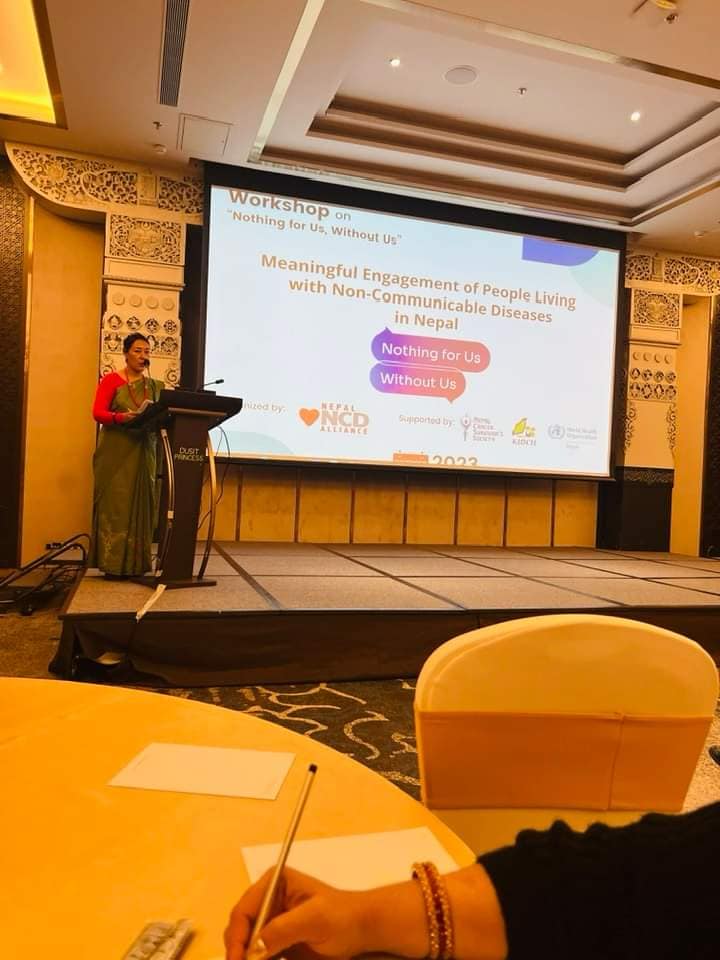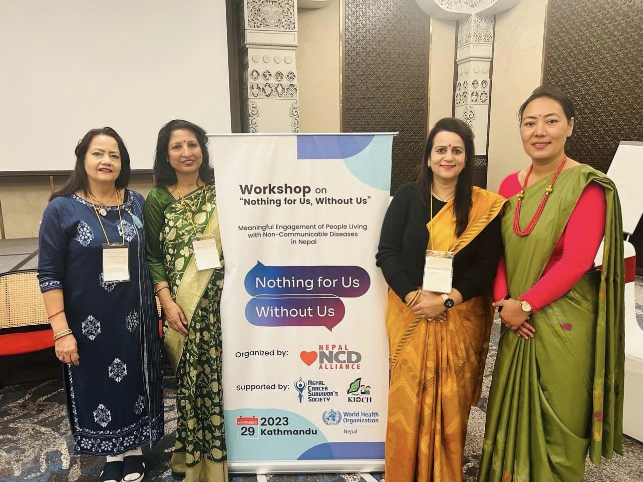 On 29th October 2023, the Nepal Cancer Survivors Society had the privilege of participating in a transformative workshop themed "Nothing for Us Without Us", focusing on the meaningful engagement of people living with non-communicable diseases (NCDs) in Nepal. The workshop was thoughtfully organized by the Nepal NCD Alliance with support from KIOCH, the World Health Organization (WHO), and the Nepal Cancer Survivors Society.